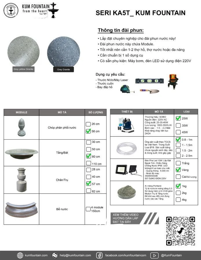 Đài nước sân vườn 1 tầng KA1T Kum Sanly