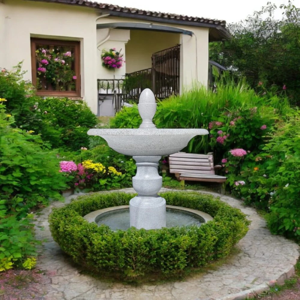 Đài phun nước cỡ lớn 1 tầng Kum Wonderful là điểm nhấn tuyệt vời cho bất kỳ sân vườn hay trang trại nào. Với thiết kế tinh xảo, đài phun gồm bốn tầng nước chảy liên tục từ trên xuống, tạo nên âm thanh êm dịu và không gian thư giãn. Mỗi tầng mang một nét đẹp riêng, kết hợp hài hòa giữa nghệ thuật hiện đại và vẻ đẹp tự nhiên.