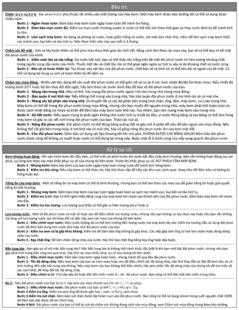 tờ 1 hướng bảo trì & xử lý sự cố đài phun nước seri ka5t tiếng Việt